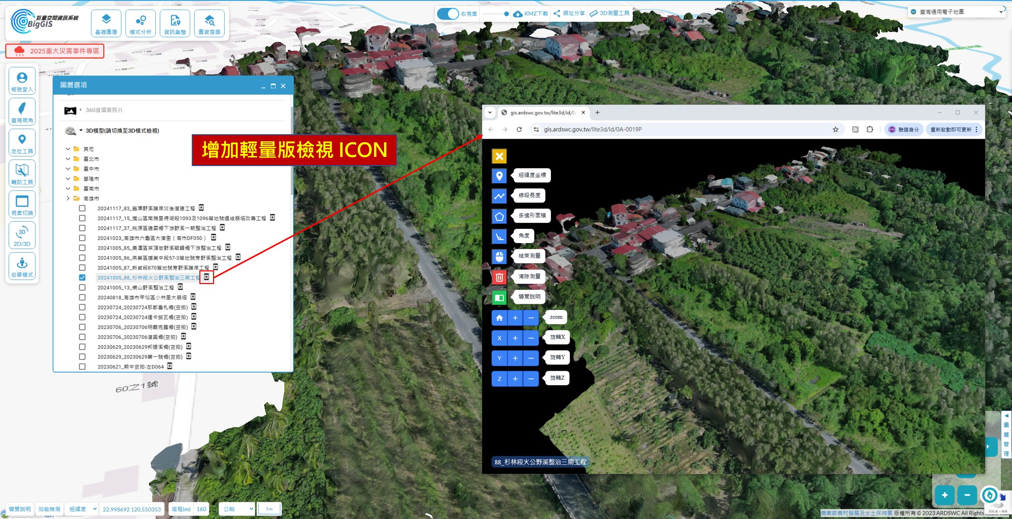 👉圖台版增加輕量版檢視ICON,方便使用者只需關注此模型即可點擊開啟,節省應用資源。