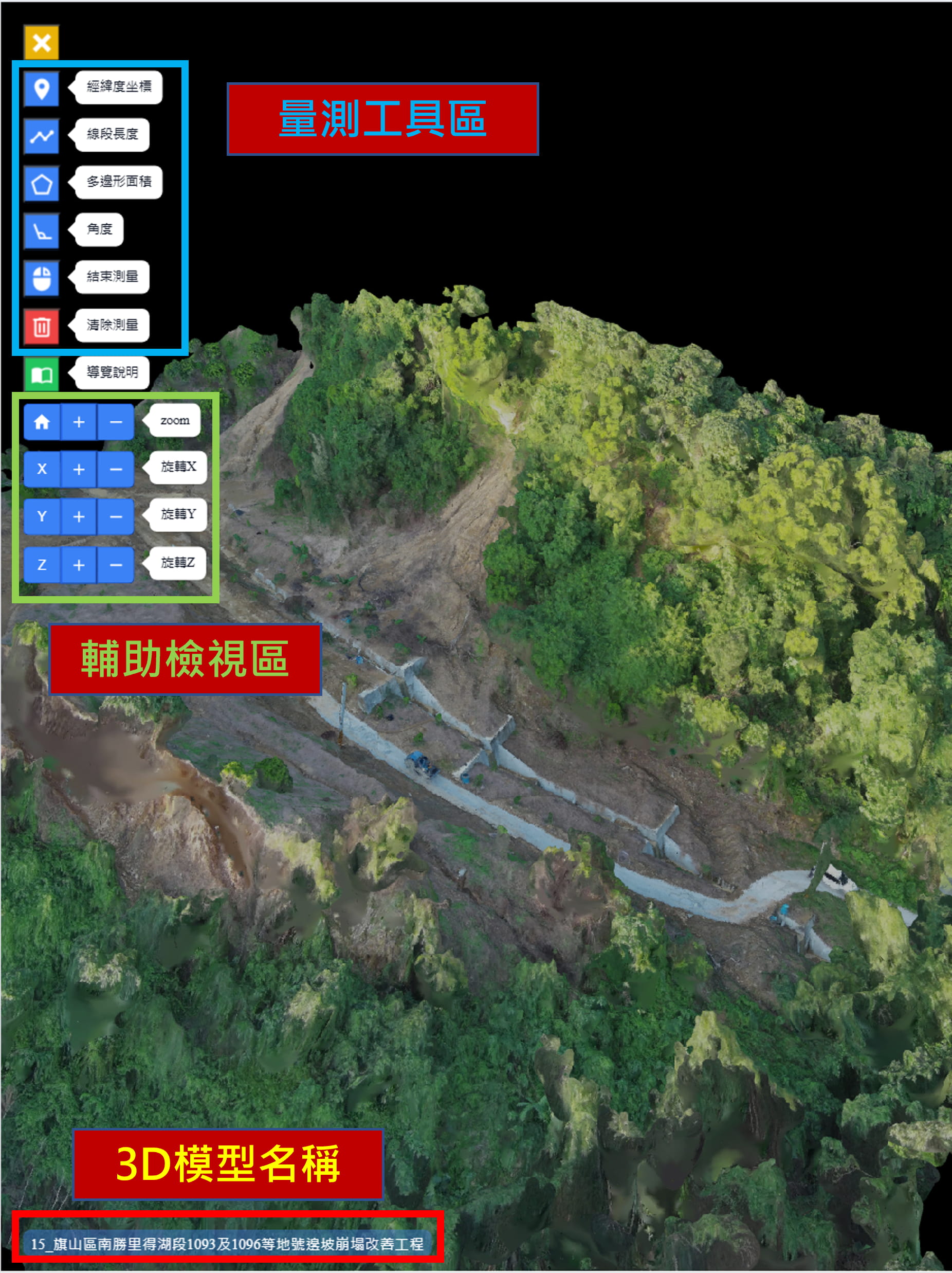 【圖3】3D模型顯示量測工具區與導覽控制面板