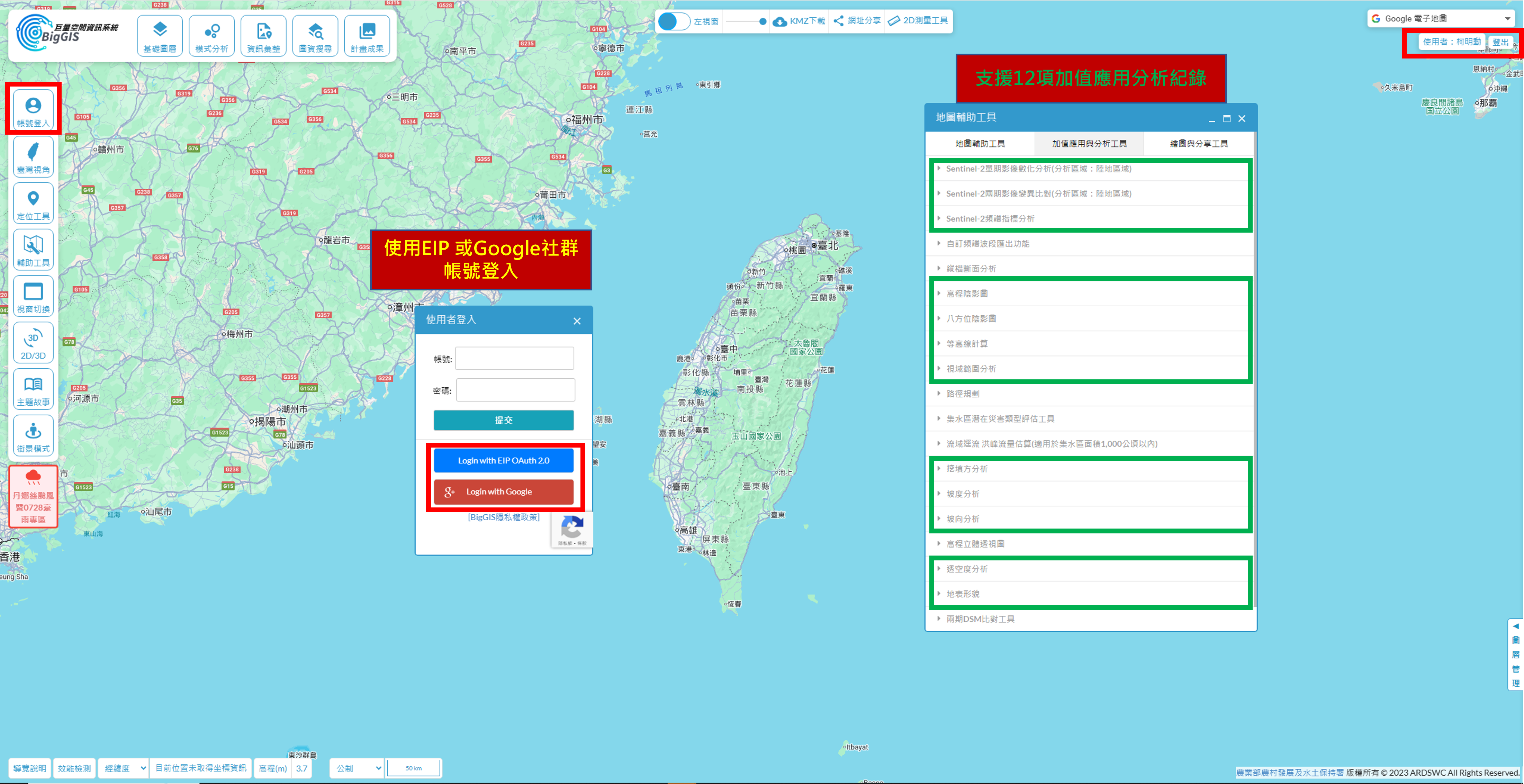 👉多方式登入整合:支援以 EIP 或 Google 社群帳號 登入,進入個人化分析管理介面。