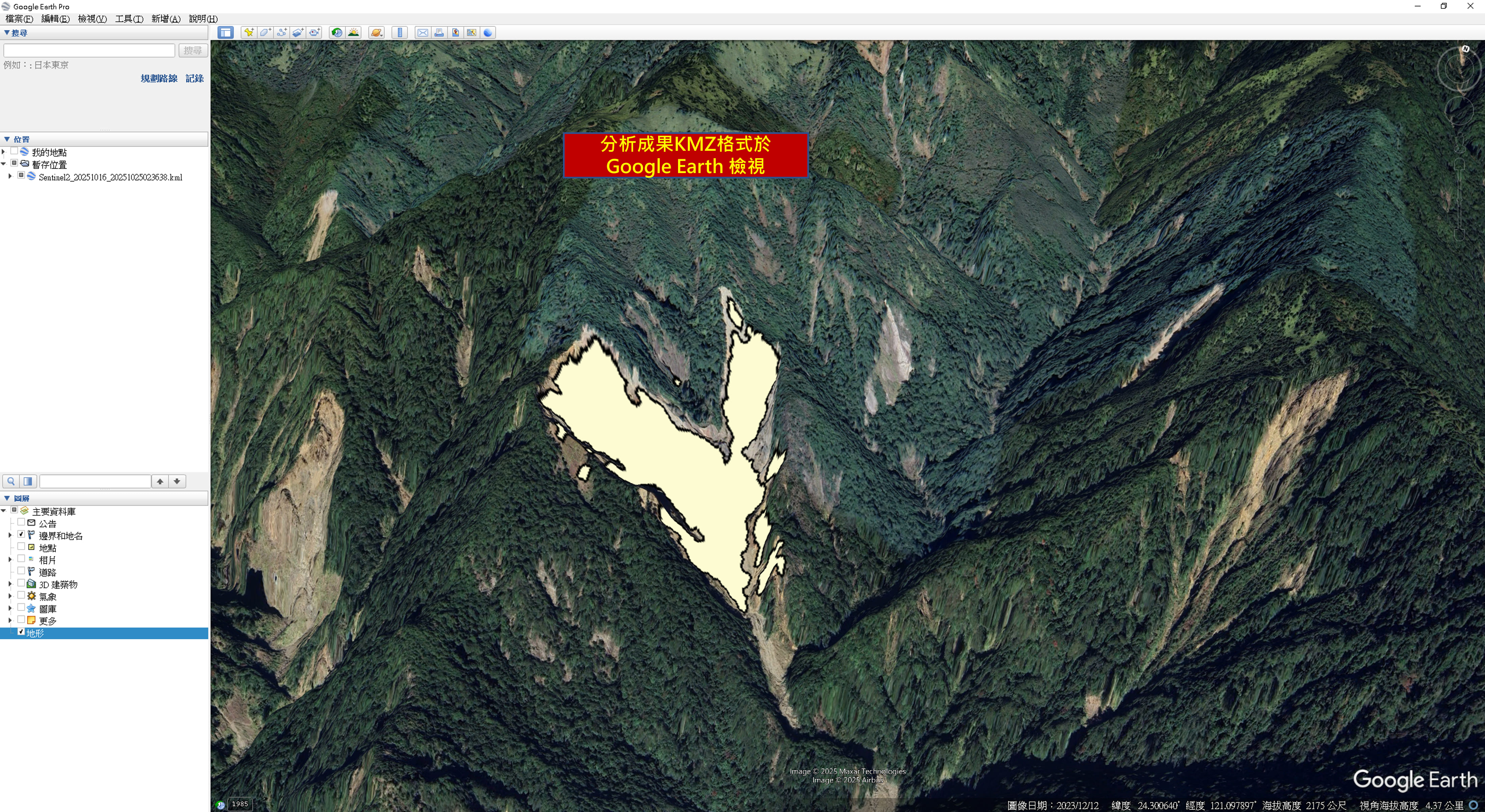 【圖5】下載 KMZ 格式分析結果,於 Google Earth 檢視與比對地形