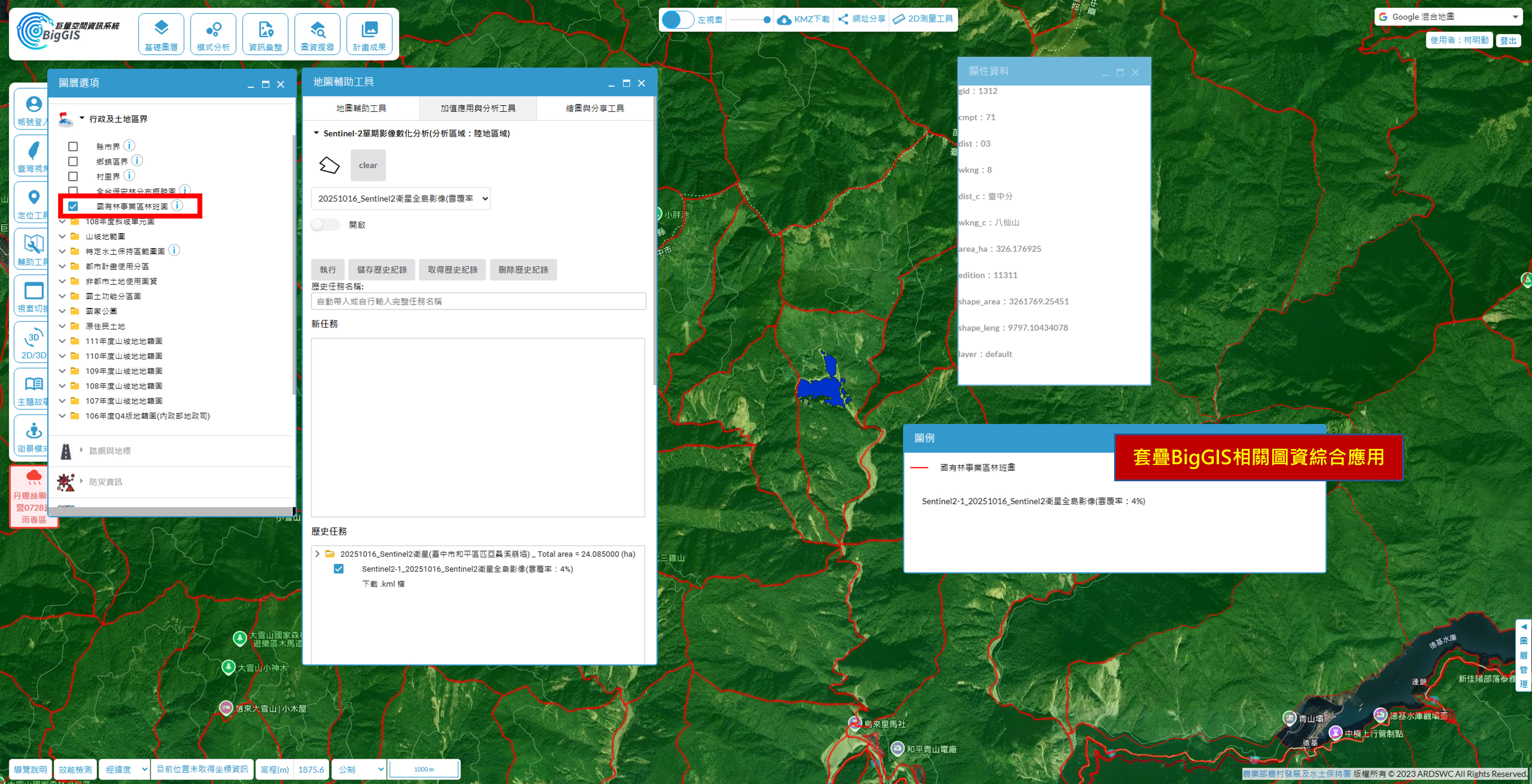 【圖7】分析成果與 BigGIS 圖資層套疊進行綜合應用