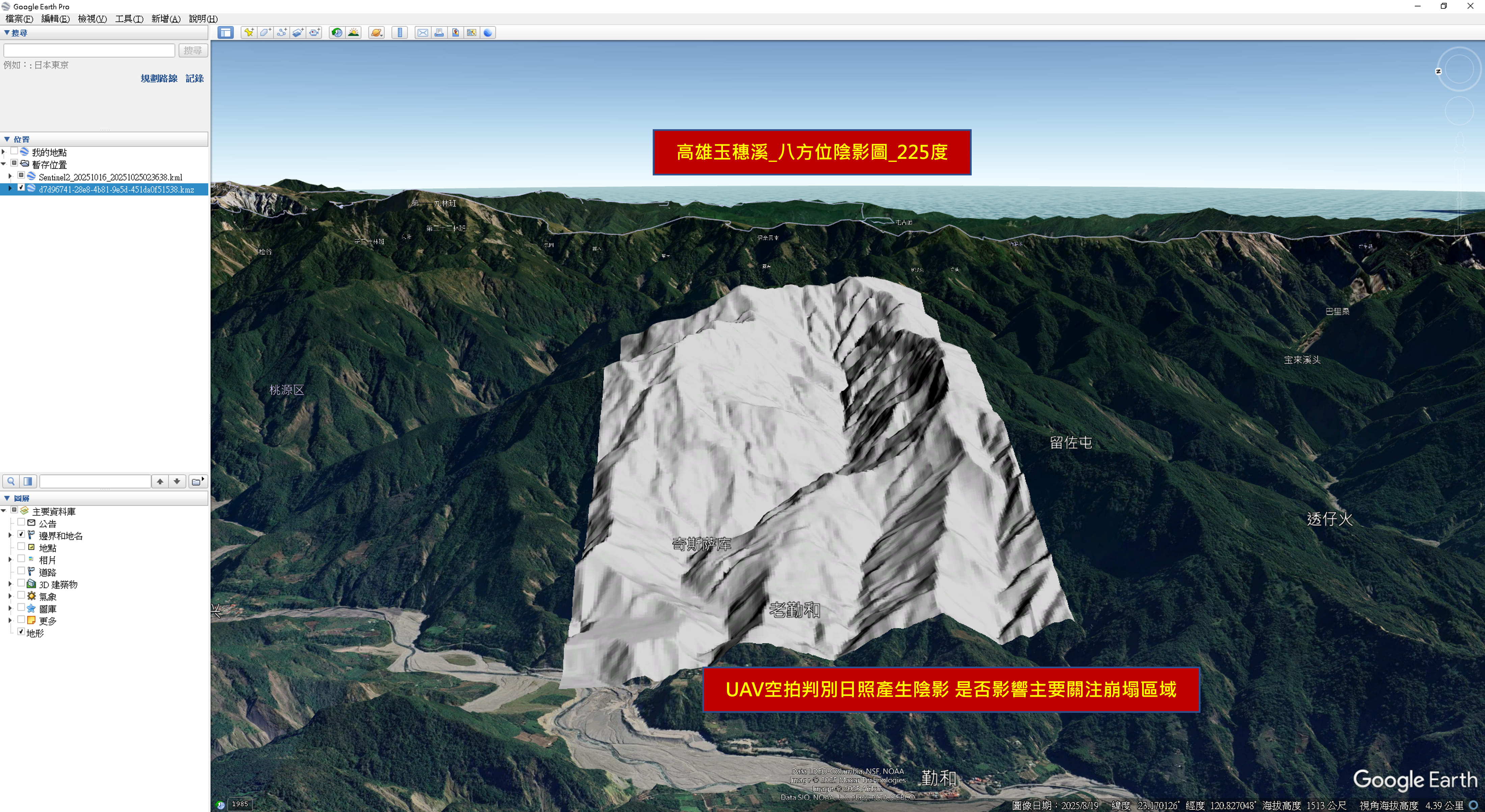 【圖9】下載高雄玉穗溪_八方位陰影圖分析成果於Google Earth 分享檢視