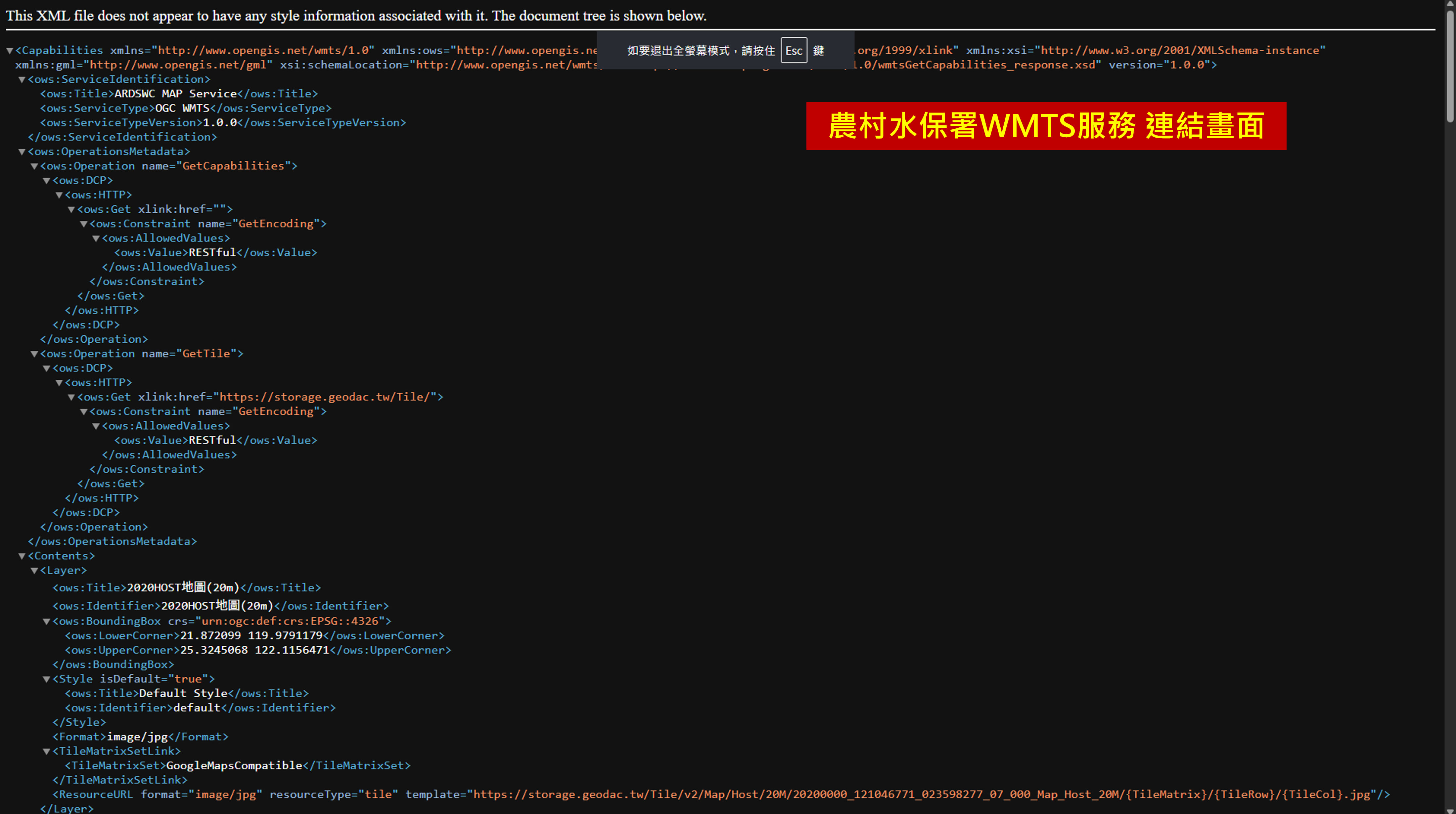 【圖5】點選服務名稱即可開啟對應 WMTS 服務連結頁面,直接查看圖磚來源與使用參考說明。