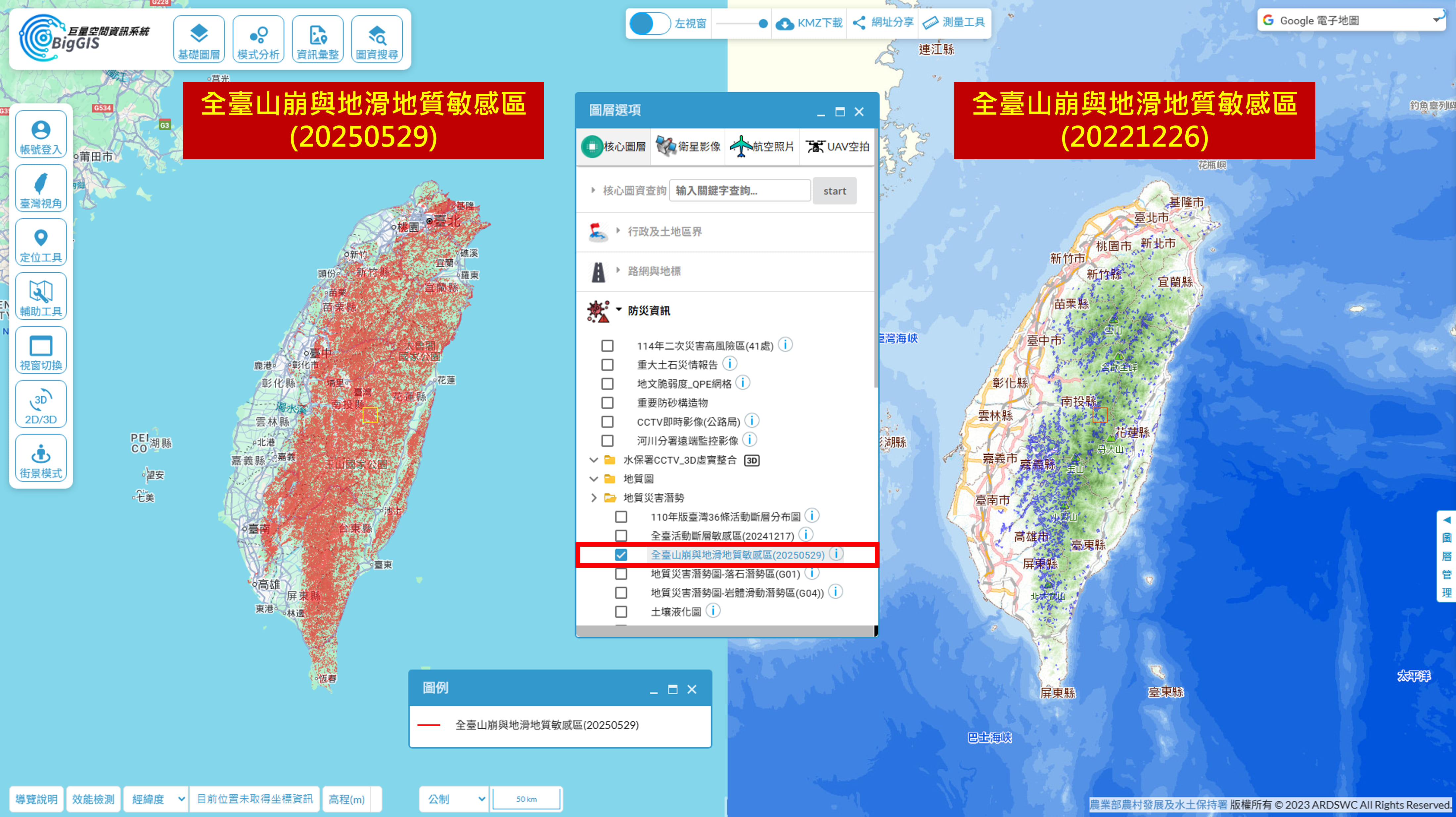 【圖2】全臺山崩與地滑地質敏感區(20250529)與全臺山崩與地滑地質敏感區(20221226)