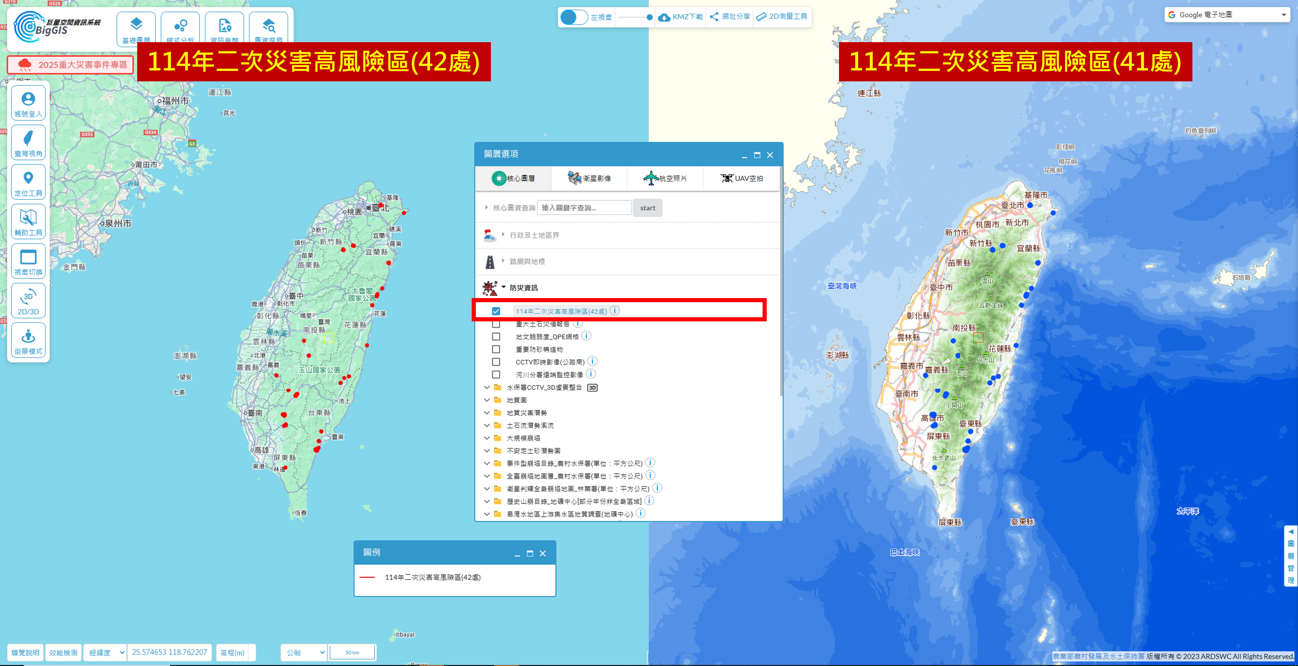 【圖2】114年二次災害高風險區(42處)與114年二次災害高風險區(41處)