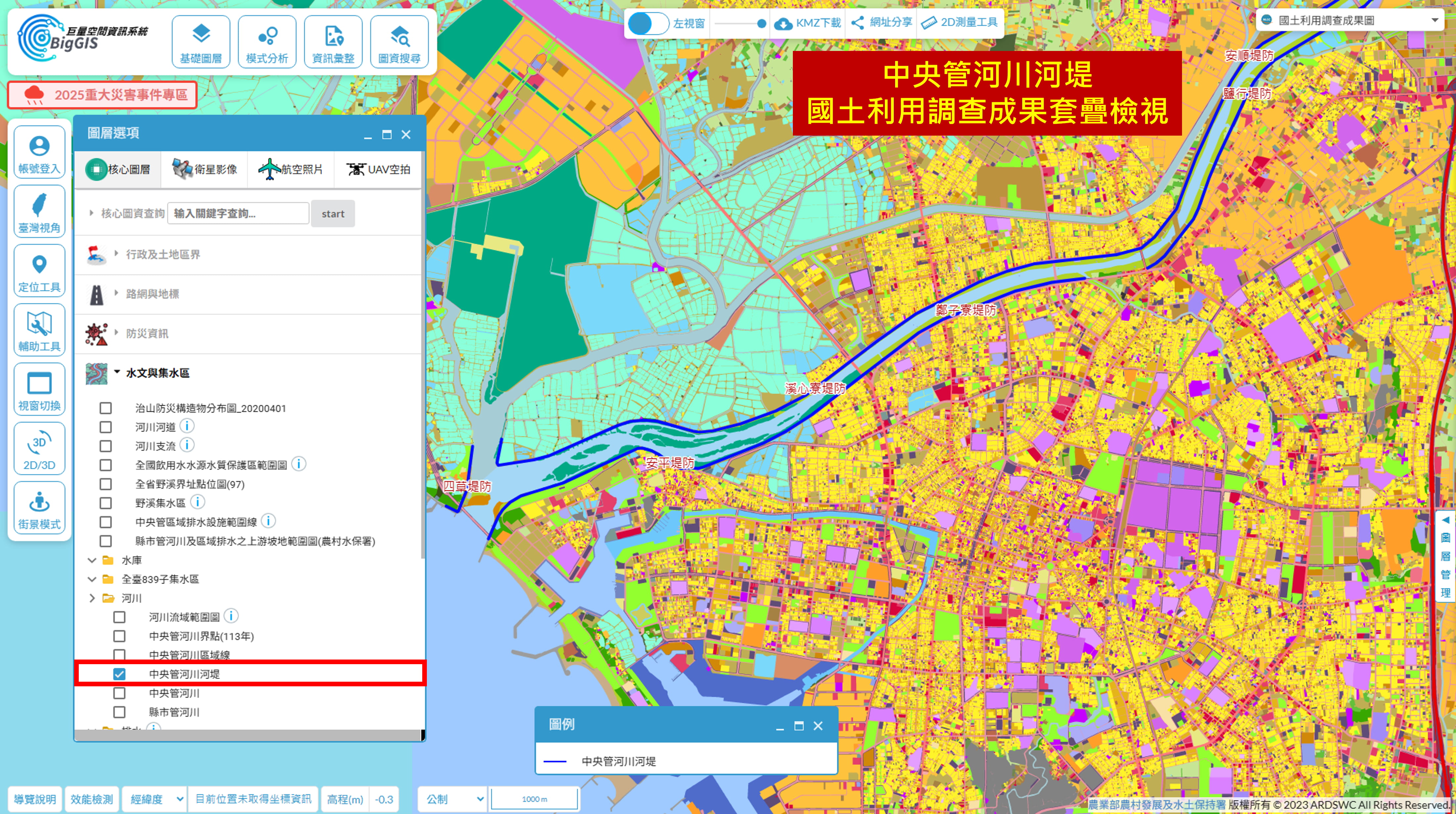 【圖4】中央管河川河堤與國土利用調查成果圖整合應用