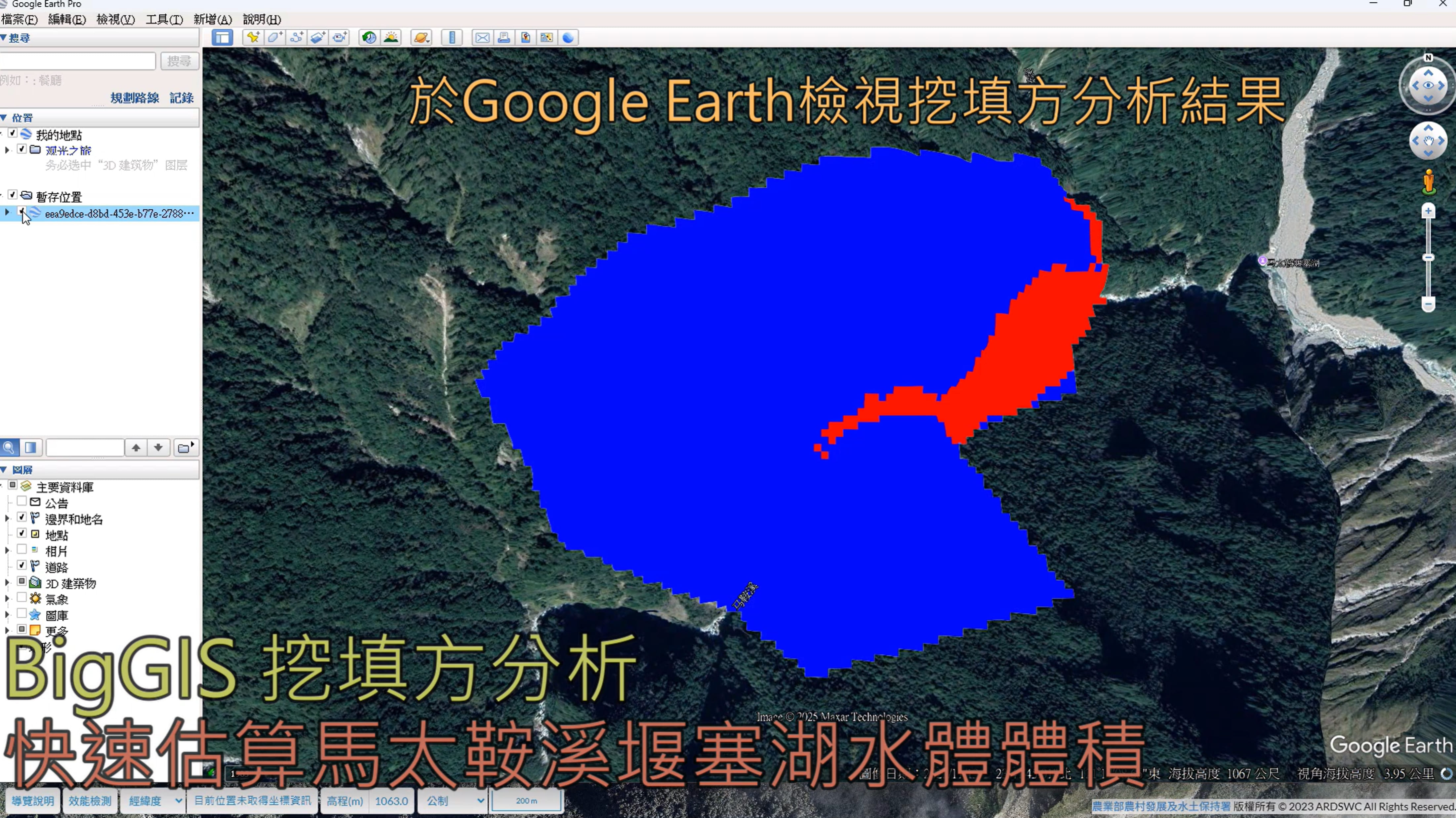BigGIS 挖填方分析-快速估算馬太鞍溪堰塞湖水體體積